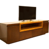 A beautifully crafted TV console made of teak wood, offering ample storage and a sleek, modern design.